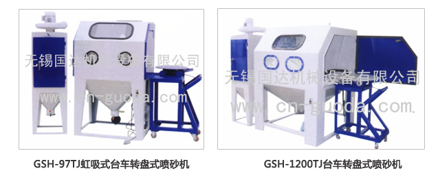 2、加装活动台车和转盘,操作时仅需将工件放在台车转盘上,然后将推如机内即可从事喷砂作业,十分简单省力,可加装顶事加热器防止玻璃珠受潮。