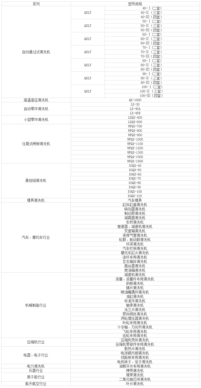 产品名称:清洗机产品一览表